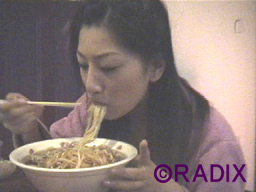お昼休みにパチリ! 前のコーナーで時間がかかった為、 ちょっとノビたラーメンになっちゃいました。 ねぎラーメンが大好きなんですって!! |