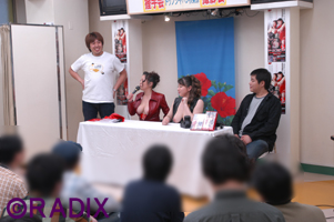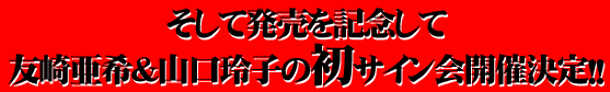 | って感じでみなさんのおかげで大成功をおさめ無事終了!本当にありがとうございました。そして、サイン会に来れなかったお客様の為に二人からサイン付き色紙を20名の方にプレゼント!応募は氏名・住所・年齢・何か一言をお書きの上こちらまでお送り下さい。 |